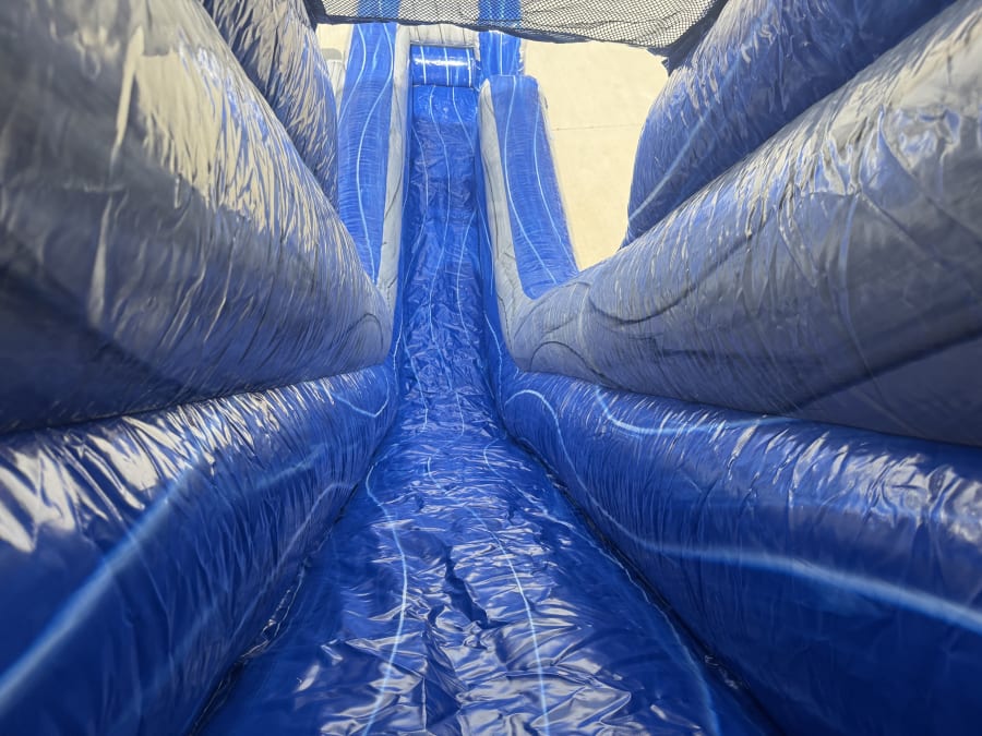 The Sky High 22 Ft Dry Slide brings towering thrills and nonstop laughs to any event. This 22' SKY HIGH DUAL LANE inflatable slide offers dual racing lanes, bold colors, and a fast, safe ride. Perfect for birthdays, school field days, community festivals, and company picnics. Quick setup. Eye-catching presence. Memorable photos.