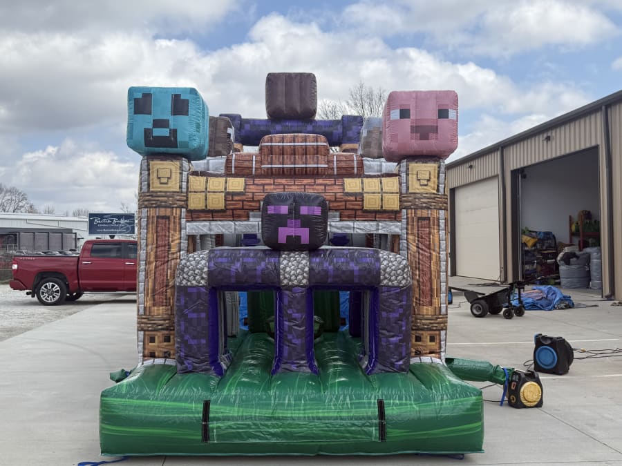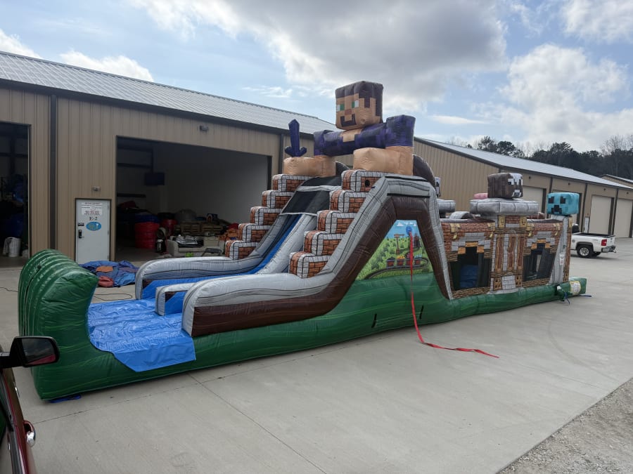 Bring high-energy fun to your event with the 50 Ft Minecraft Obstacle Course (WET). Bright, bold, and built for thrills, this inflatable delivers nonstop sliding, climbing, and wet obstacle action for kids and adults. Perfect for birthdays, school carnivals, community festivals, and backyard parties. Quick to set up. Safe and supervised play. Hours of unforgettable entertainment. 🧩🎉